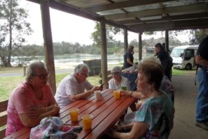 Special catering requests were catered for- with Sam enjoying her vego burger and Beryl hoeing into a chicken kebab whilst the rest of us devoured sausage sangers with salad and fruit cake. Many clients commentated what a lovely relaxing day and looking forward to our next fortnightly bus trip on the24th October to the Coffs Harbour Surf Club.